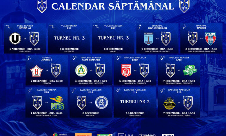 Prima săptămână din decembrie vine cu meciuri tari în competițiile interne, iar echipele noastre vor să încheie anul cu cât mai multe victorii. După calificarea în play-off-ul FIBA EuroCup Women și în semifinalele Cupei României, CSM Constanța joacă, în Sala Sporturilor, derby-ul Ligii Naționale, cu Sepsi! Voleibalistele și handbaliștii merg după puncte în deplasare, la Cluj-Napoca și, respectiv, Focșani, în timp ce echipele de tineret și de juniori sunt angrenate în campionatele interne, la diferite categorii de vârstă. Tuturor, le urăm succes! Hai, Constanța!