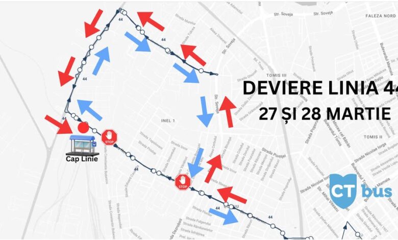 Din acest motiv traseul liniei 44 va fi deviat. Astfel, la intersecția străzilor Baba Novac – Soveja pe sensul spre bd. Aurel Vlaicu, autobuzele vor vira la dreapta până la sensul giratoriu de la str. Ștefăniță Vodă. De acolo se va circula pe traseul obișnuit până la stația Aurel Vlaicu ce devine cap de linie.