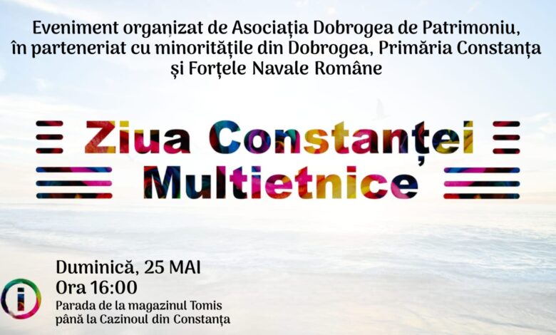 Asociația Dobrogea de Patrimoniu și reprezentanții etniilor din Dobrogea, în parteneriat cu Primăria Constanța și Forțele Navale Române, organizează duminică, 25 mai 2025, de la ora 16.00, evenimentul cultural „Ziua Constanței Multietnice”.