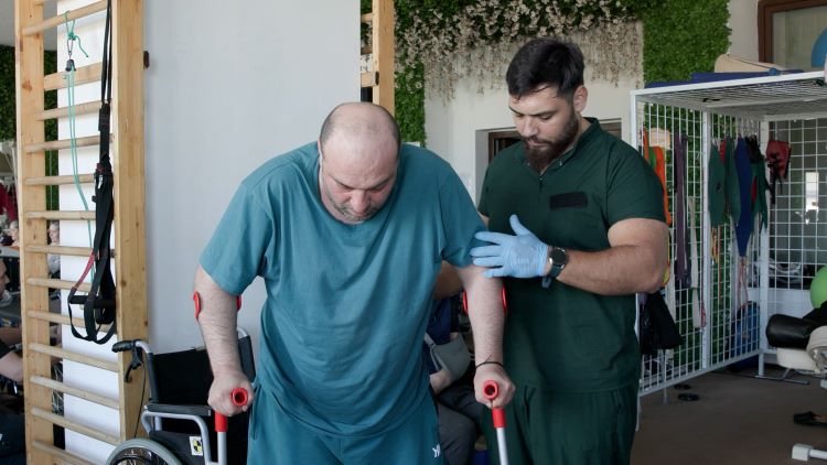 Echipa de aici este foarte muncitoare și perseverentă, cu profesionalism de nota 10. Lucrează foarte mult cu mine, pot spune că până la epuizare. Nu se pune problema că s-a încheiat ora de terapie. Se lucrează cât poți tu să duci. Eu, de exemplu, lucrez două ore și jumătate dimineața și două ore și jumătate după masă”, explică pacientul Gabriel Ene evoluția sa, în Spitalul „Sf. Sava” – Ilfov.