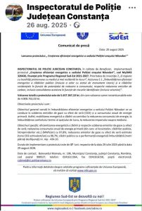 Subliniem faptul că toate datele referitoare la modernizarea sediului Poliției orașului Năvodari sunt publice încă din luna august a anului 2025.