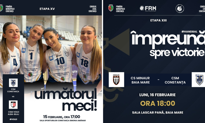 CSM Constanța se pregătește pentru două confruntări importante, la volei feminin și handbal masculin, meciuri care se anunță spectaculoase și decisive în economia sezonului.